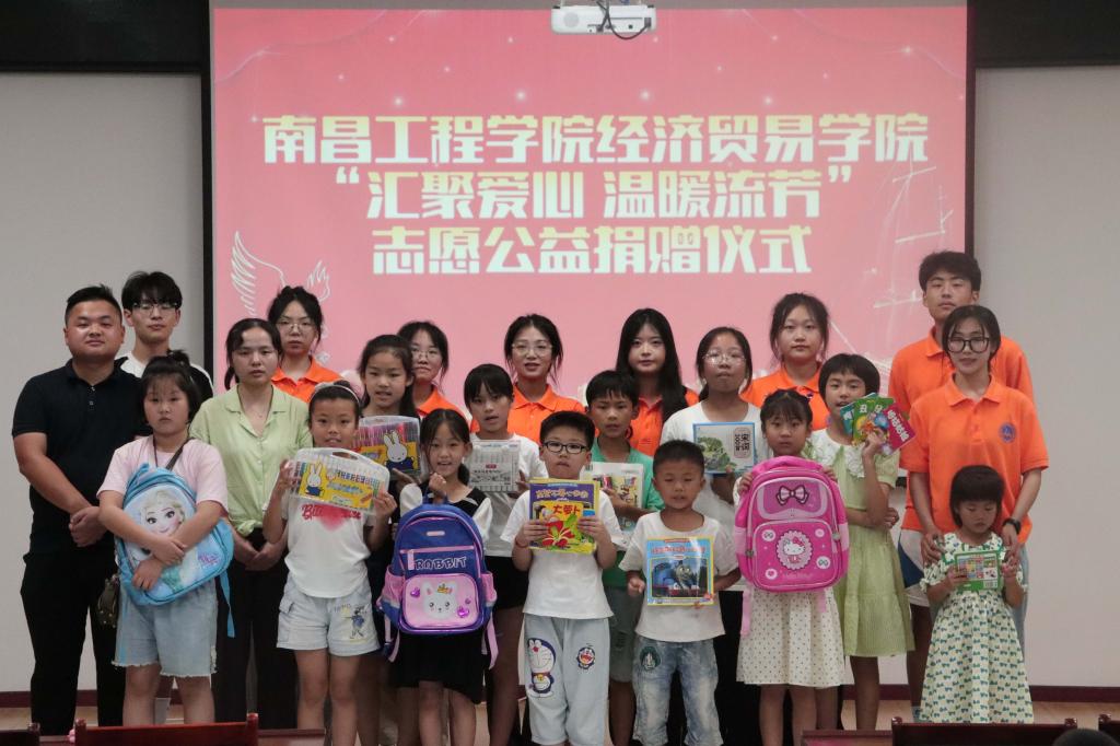传递爱与温暖,助力乡村振兴。7月10日,经济贸易学院暑期“三下乡”社会实践团于九江市湖口县流芳乡豆文化产业园举行“汇聚爱心 温暖流芳”志愿公益捐赠仪式,实践团代表我院将所募集的图书、书包、衣物和画笔等物资捐赠给流芳乡儿童。青少年社会实践点校务负责人黄添志以及实践团全体成员出席此次捐赠仪式。