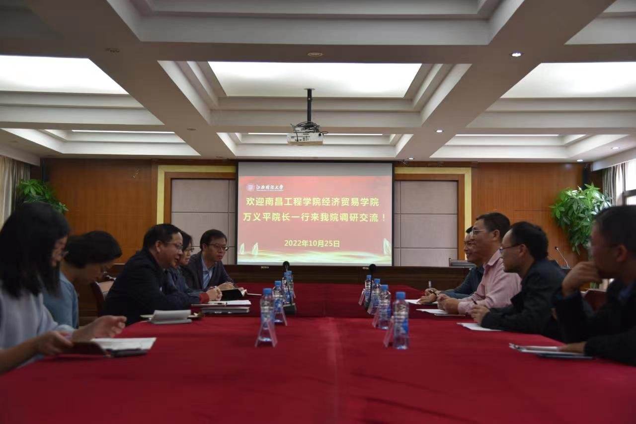 2022年10月26日上午,经济贸易学院院长万义平、副院长阚大学一行前往江西财经大学经济学院、财税与公共管理学院学习调研,受到江西财经大学学院负责人的热情接待。