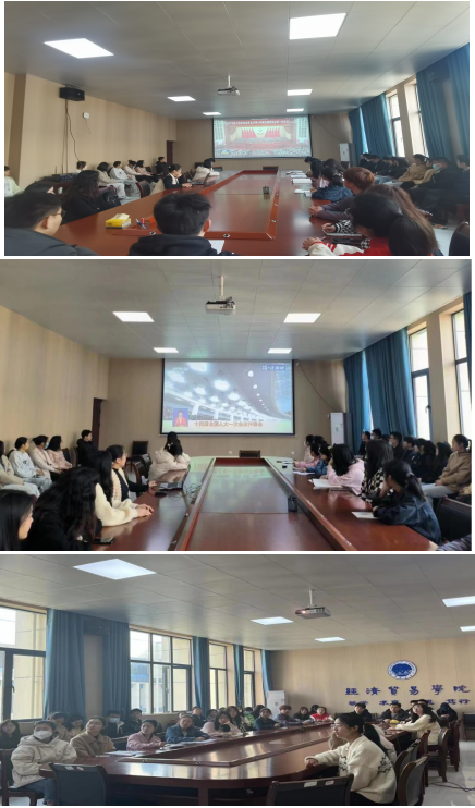 十四届全国人大一次会议和全国政协十四届一次会议分别于3月5日和4日在北京召开。为深入学习贯彻2023年全国两会精神,增强同学们的政治理论素养,经济贸易学院组织团学干部和学生党员在学院会议室集中收听收看开幕式实况直播。