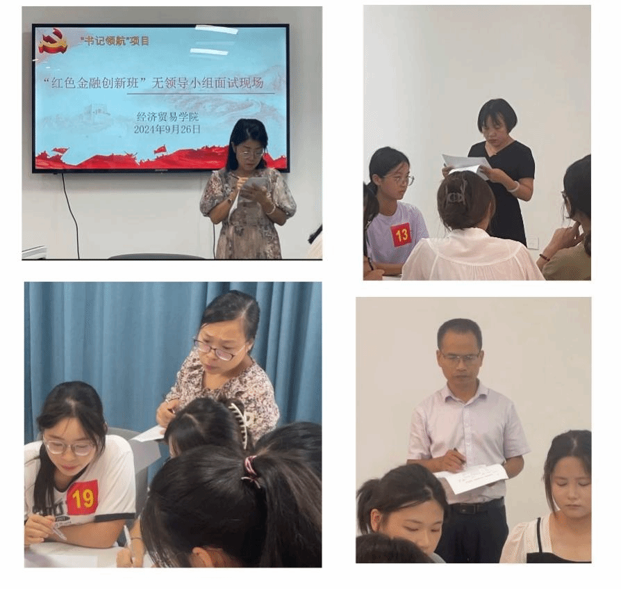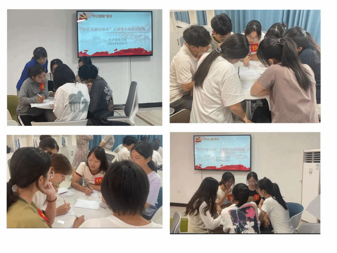 9月26日中午,经济贸易学院在济民楼B308开展“红色金融创新班”选拔面试工作,面试采取无领导小组面试形式。所有报名申请“红色金融创新班”的23、24级同学参加了面试。