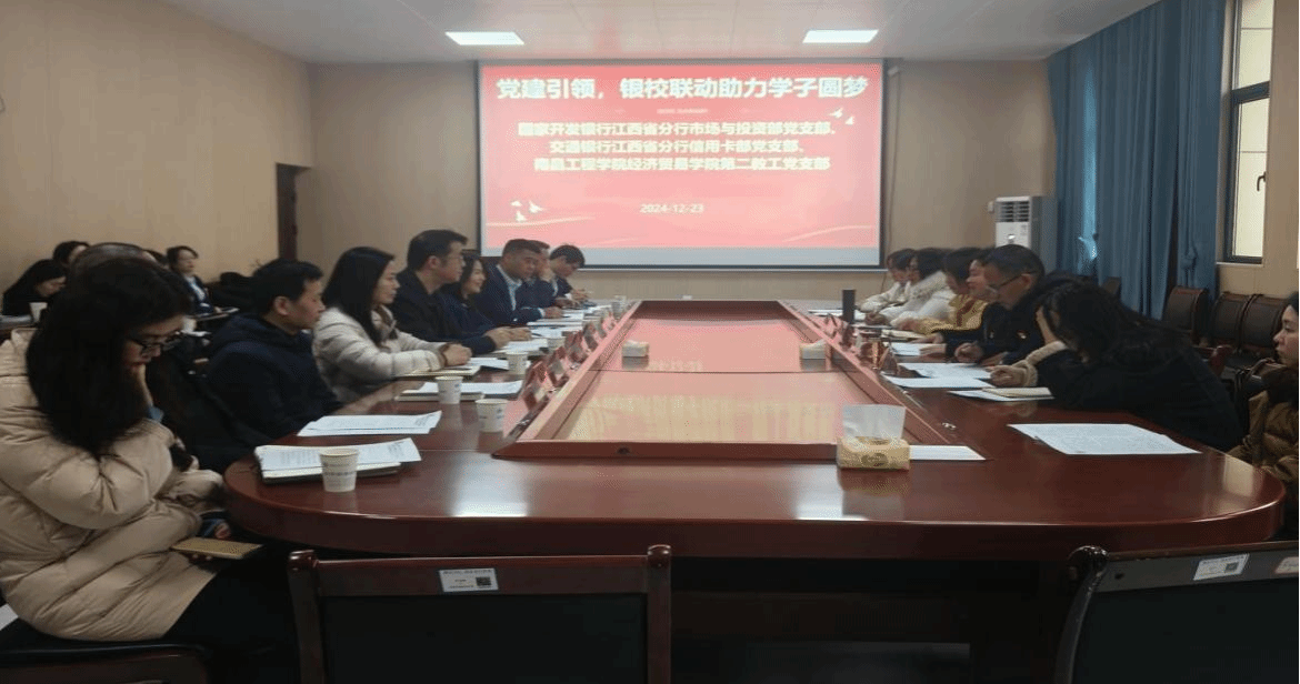 为深入学习习近平总书记关于金融工作的重要论述,12月23日下午,经济贸易学院国贸金融教研室党支部与交通银行江西省分行信用卡部党支部、国家开发银行江西省分行市场与投资部党支部在济民楼B406开展“党建引领,银校联动助力学子圆梦”主题党日活动,学院党委书记刘志强、国贸金融教研室党支部和两个银行党支部党员代表及学生代表共30余人参加了活动。