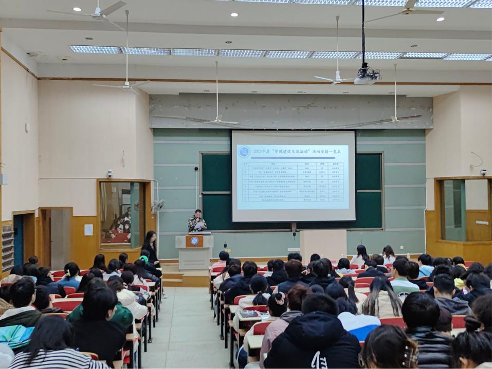 为深入宣传贯彻党的二十大精神,落实立德树人根本任务,进一步加强学风建设,激发学生学习动力,促进学生健康成长和全面发展,切实提升人才培养质量。3月29日晚上,经济贸易学院在教学北楼C104开展学风建设月活动启动大会。全体辅导员和学生代表,共计200余人参加了本次活动。
