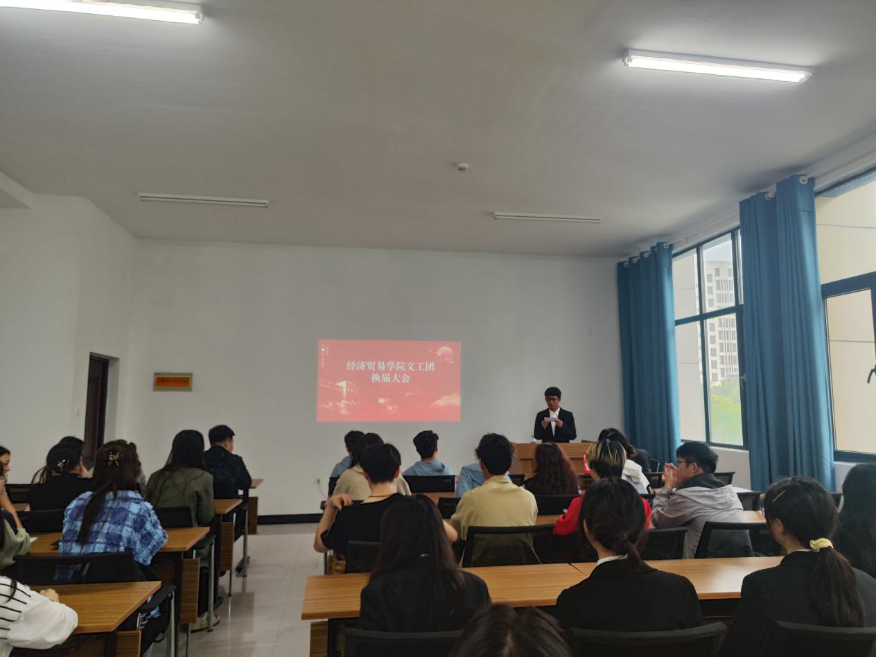 2023年4月14日,经济贸易学院文工团在济民楼B206举行换届大会,学院分团委副书记臧秀娟老师、学生兼职团委副书记吴仪、学生会主席团成员和文工团成员参加会议。