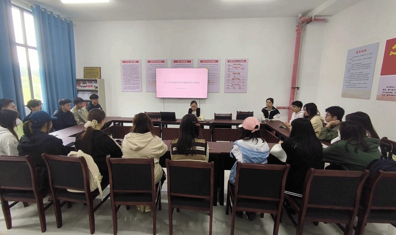 为了进一步加强学院网络评论员队伍建设,4月11日中午,经济贸易学院在济民楼B211开展2024年网络评论员培训,学院辅导员赵姗和学院所有网络评论员参加了培训会。