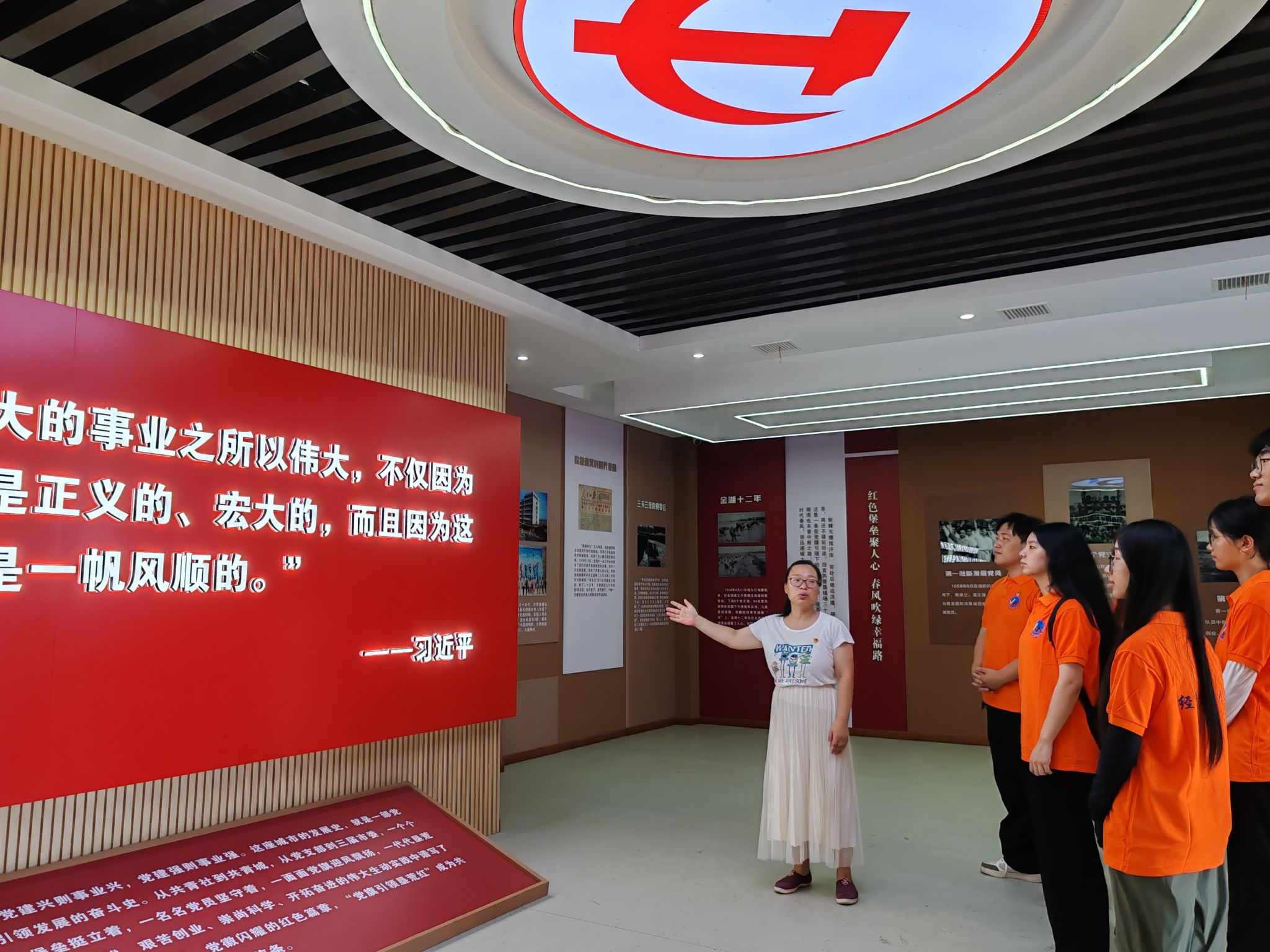 在体验园内,实践团成员深入了解了当年来自上海的98名知青志愿者来到共青城,艰苦创业、开拓奋进的感人故事。在垦荒展示馆内,赵姗老师带领成员们了解了老一辈共产党人是如何用自己的青春和热血将荒地变良田,荒山变果园,将几个小茅棚发展成“鄱阳湖畔的小上海”,将不到百人的共青社发展成共青城。