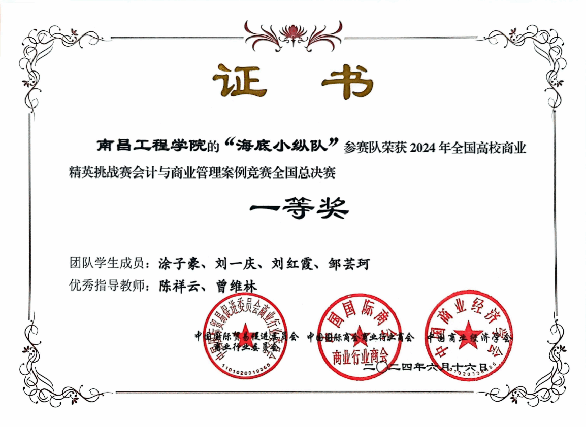 竞赛分为知识赛、校赛、全国预选赛和全国总决赛四个阶段。学生在老师的悉心指导下,从会计学、财务管理等专业角度深入研究案例,制定详细的商业计划书。在全国总决赛中,参赛队伍以瑞贝卡企业为实例,通过PPT展示和答辩的形式,充分展示了他们的商业策略和管理决策能力。经过激烈竞争,我院师生获得多项荣誉。其中,全国总决赛一等奖2项,二等奖6项,三等奖1项。南昌工程学院获得最佳院校组织奖。