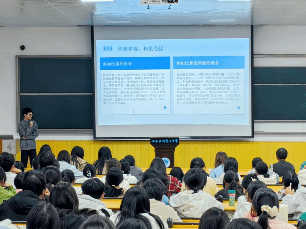 宣讲会伊始,辅导员谌老师为同学们详细解读了本科生国家奖学金政策及参评条件,为在场学子明晰奋斗目标与方向。随后,五位国家奖学金推荐者依次上台分享,以自身经历为蓝本,从学习科研、竞赛拼搏、社会实践、志愿服务以及个人成长等多个维度,毫无保留地分享宝贵经验与心路历程,用鲜活的故事点亮台下每一位同学的逐梦之路。