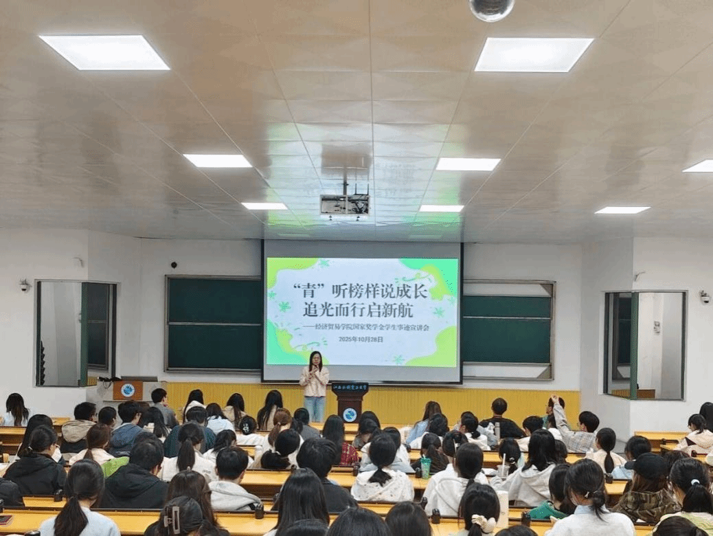 为充分发挥国家奖学金推荐者的示范引领作用,凝聚青春奋斗力量,2025年10月28日,经济贸易学院于南C105举办国家奖学金推荐者优秀事迹宣讲会。300余名学子怀揣着对优秀榜样的敬仰与自我提升的渴望,齐聚一堂,共同聆听这场关于梦想、拼搏与成长的青春分享。