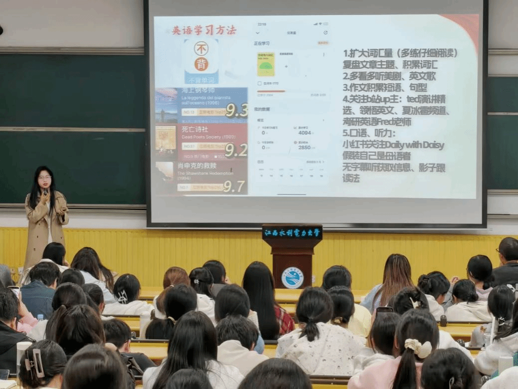 24国际经济与贸易03班刘敏针对英语基础薄弱的同学,分享了实用的“沉浸式学习法”,建议通过多听美剧、英文歌曲,结合复盘文章主题积累词汇的方式,在轻松氛围中提升英语能力,为同学们提供了可操作、易执行的提升路径。