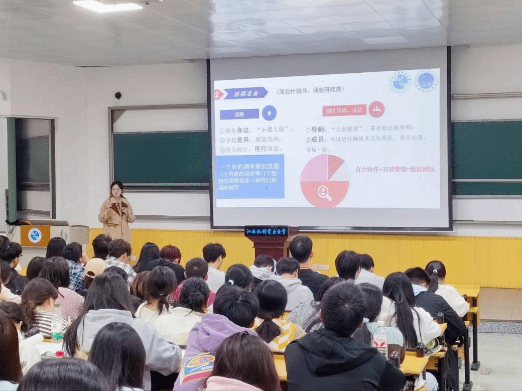 第十一届全国大学生能源经济学术创意大赛国家特等奖获得者全睿妍同学聚焦“竞赛选题策略”分享心得,提出“关注身边实际,‘小题大做’挖深度”的选题理念,建议同学们从日常生活、行业热点或社会需求中挖掘选题方向,既要注重方案的创新性与亮点呈现,更要兼顾可行性与落地性。她通过自身选题优化的经历,生动展示了如何将“小视角”转化为“好项目”,为同学们破解选题难题提供了实用参考。