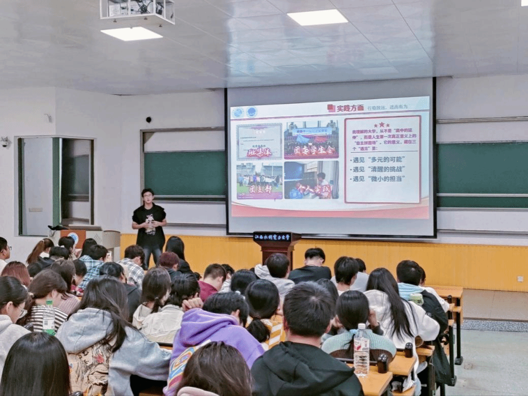 院学生会主席团成员、23国际经济与贸易02班班长吕思源围绕“社会实践与阅历积累”展开分享,结合参与社区志愿服务、企业实习实践的经历,倡导同学们走出校园、走进社会,在社会实践中主动锻炼沟通能力、增强社会责任感,通过亲身体验丰富人生阅历、明晰职业方向。