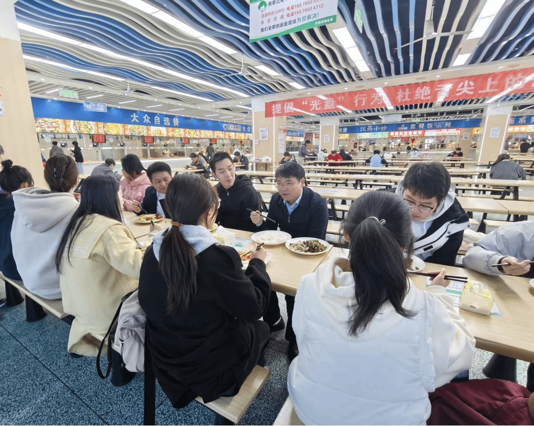 随后,周仲魁前往沁园食堂,与同学们围坐在一起共进午餐。就餐过程中,他关切地询问同学们对食堂菜品质量、价格、口味以及服务的意见和建议,并结合自身工作经历和行业发展趋势,为同学们分享了职业规划的核心要点,鼓励大家既要深耕专业知识,扎实掌握核心技能,也要主动参与社会实践,拓宽视野格局,树立清晰的人生目标,为未来就业创业积蓄力量。(文/图 谌小燕)