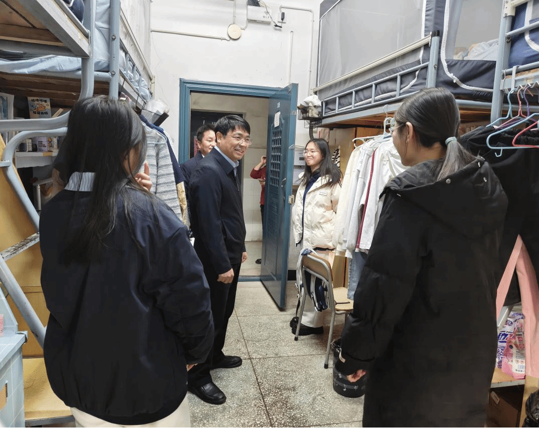 在12栋学生宿舍,周仲魁仔细查看了宿舍的住宿环境,从设施配备、室内卫生到消防安全隐患排查,每一个细节都格外关注。他亲切询问同学们的学习情况以及生活中遇到的困惑,叮嘱同学们要养成良好的生活习惯,营造整洁有序、互助友爱的宿舍氛围,时刻绷紧安全这根弦,增强自我防护意识和应急处置能力,共同打造安全、文明、和谐的“温馨小家”。