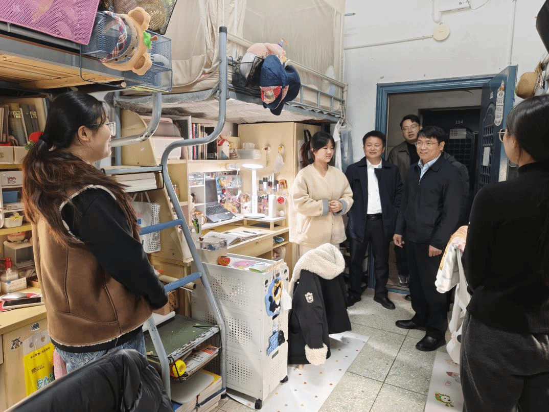 11月18日,校党委委员、副校长周仲魁深入经济贸易学院学生宿舍调研走访,与同学们面对面交流、心贴心沟通,传递学校的关怀与温暖。经济贸易学院相关负责人陪同走访。