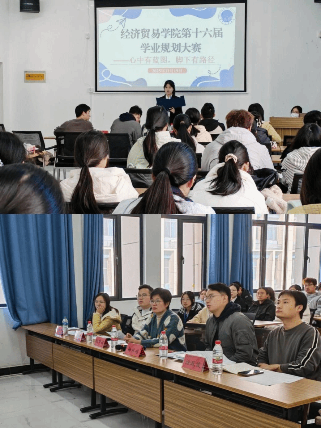 为引导学生明确学业发展方向,科学规划成长路径,提升综合素质与核心竞争力,2025年11月19日,经济贸易学院于济民楼B206成功举办第十六届学业规划大赛。学院全体辅导员、部分班主任代表、2024级、2025级参赛选手与学生代表共计80余人参加了大赛,共同见证这场青春逐梦的精彩比拼。
