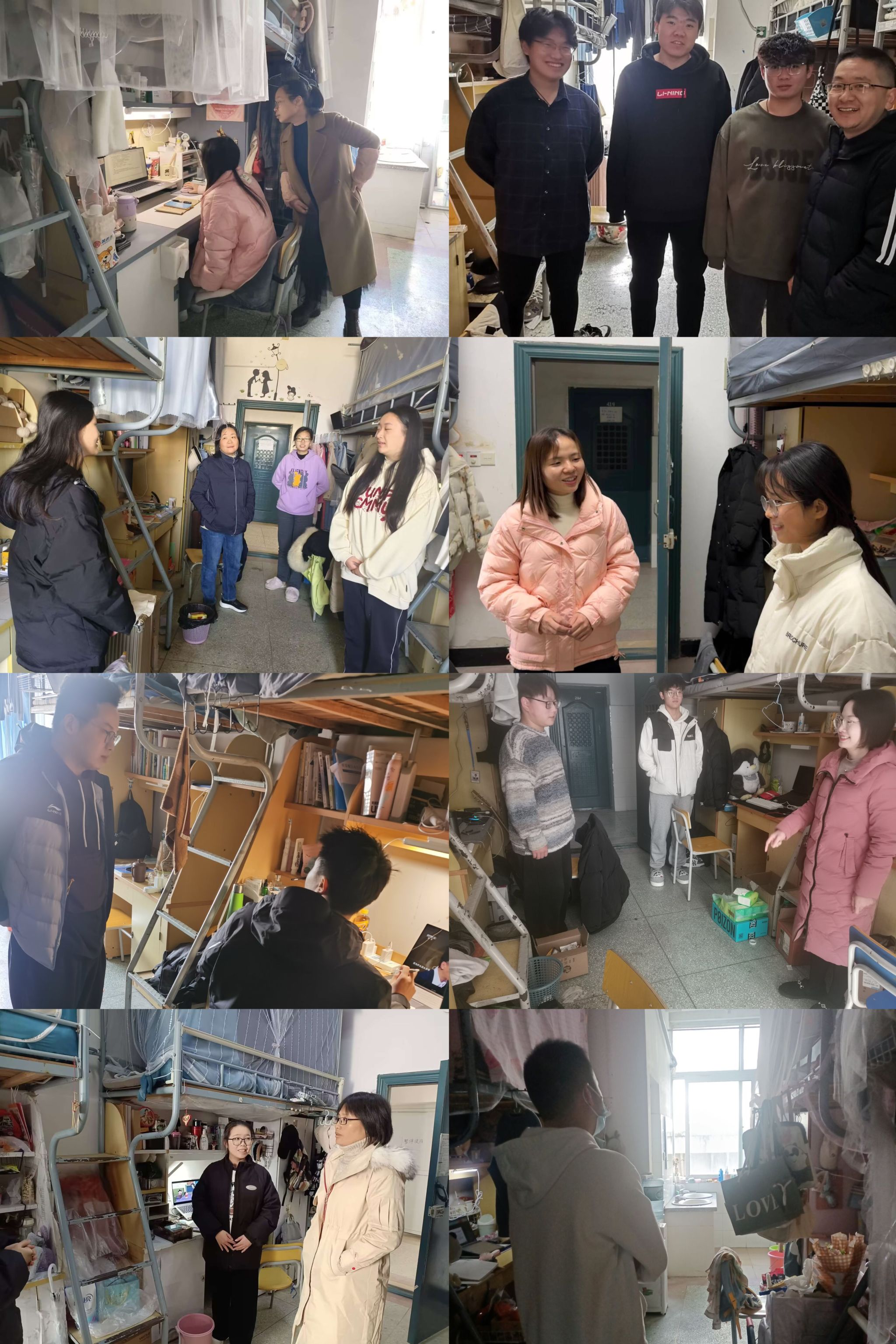 12月25-29日,经济贸易学院组织全体班主任深入学生公寓,了解关心学生元旦假期去向,提醒同学们注意人身安全、交通安全的的同时也提醒同学们要注意宿舍用电安全,严禁使用违规电器,做好宿舍内务,养成良好生活习惯,营造积极健康生活,共建文明宿舍,要求学生好好准备考试,诚信考试并积极引导同学们按照要求安全离校、按时返校,遵守学校社区管理规定,拒绝晚归,私自外宿。(文/李赫之 图/各班主任)