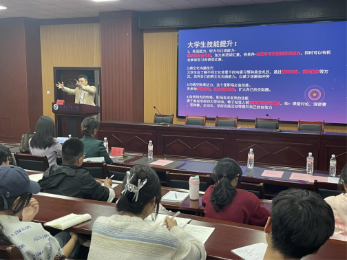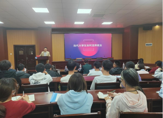 讲座中,刘森华以《当代大学生如何选择就业》为题,给同学们讲述了自己的成长历程和创业经历,结合国际经济与贸易专业,对就业方向、就业城市、就业的企业选择三个方面进行了经验分享。通过对企业优秀员工成长轨迹分析并就当前的就业形势,建议同学们在大学期间一定要制定明确的、切实可行的目标和职业规划;在做好正确的选择之前要树立良好就业观念,提升就业创业能力;抓住大学这一人生发展黄金期,学好专业知识的同时也积极参与各项活动,提高个人的综合能力。