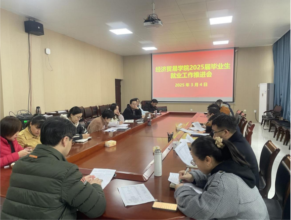 为扎实推进毕业生就业工作,全面部署就业服务举措,3月4日上午,经济贸易学院在济民楼B406会议室召开2025届毕业生就业工作推进会。学院领导、各教研室主任、专业负责人、全体毕业班班主任及辅导员参会。
